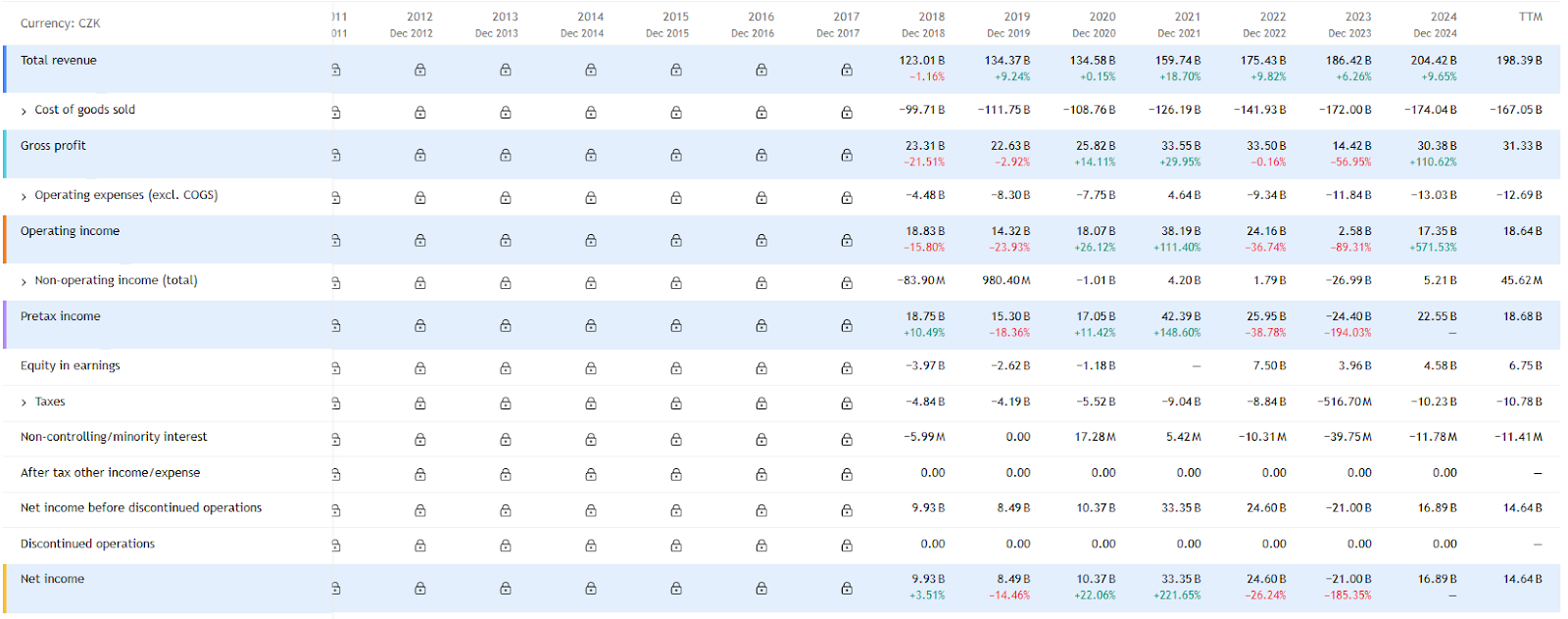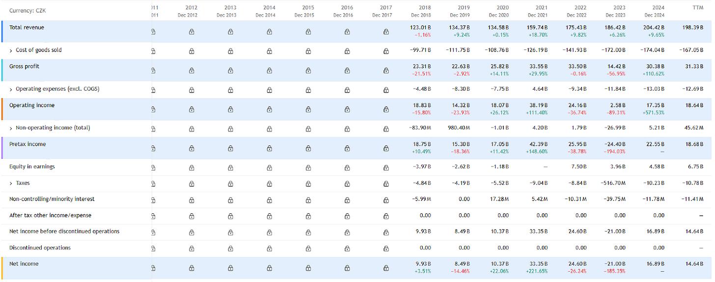 Market Cap: 362.29 billion CZK ($17.7 billion)