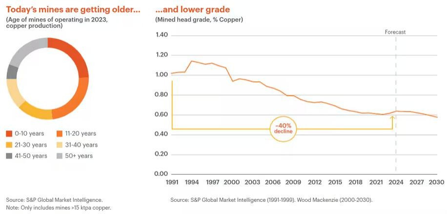 Scarcity Cuts Both Ways. The same scarcity story supporting higher prices also forces miners to spend more. New copper projects are capital-intensive, and developing them often requires billions in upfront investment. Meanwhile, older mines tend to see declining ore grades, which makes extraction more complex and expensive. Even in a strong copper market, miners may need to reinvest a substantial portion of cash flow simply to sustain production.