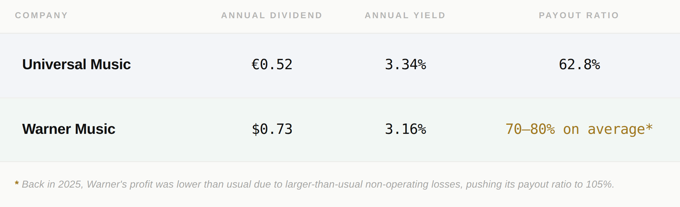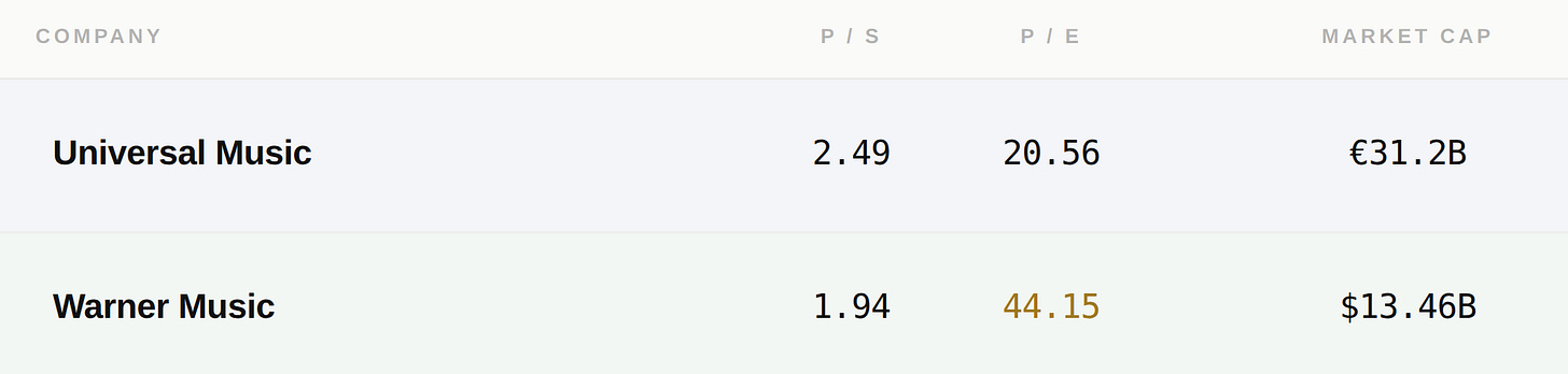 Today’s idea is a moderately speculative bet on two dominant players in the global music industry that, for now, look mispriced relative to the durability of their underlying businesses. The setup is straightforward: high-quality assets, steady cash flows, and a market narrative that may be leaning too far in one direction.