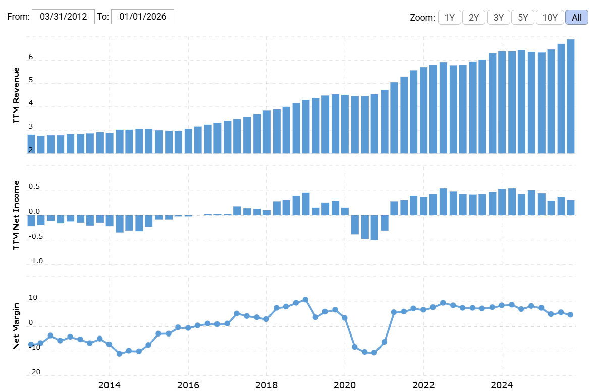 Warner Music is also profitable, though margins are thinner: gross margin was 45.87%, operating margin 11.16%, and its net margin was 4.43% in 2025. The gap largely reflects cost structure differences and capital allocation choices.