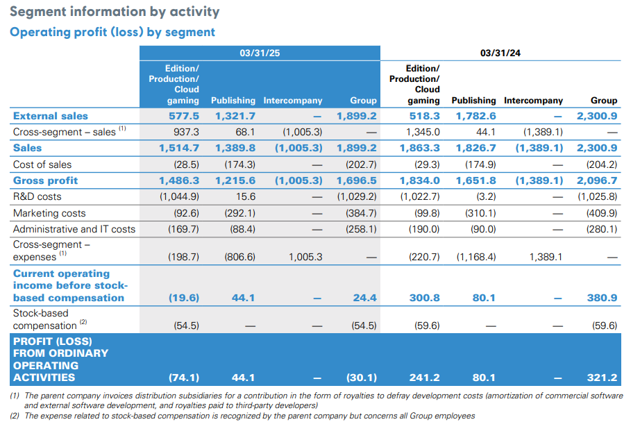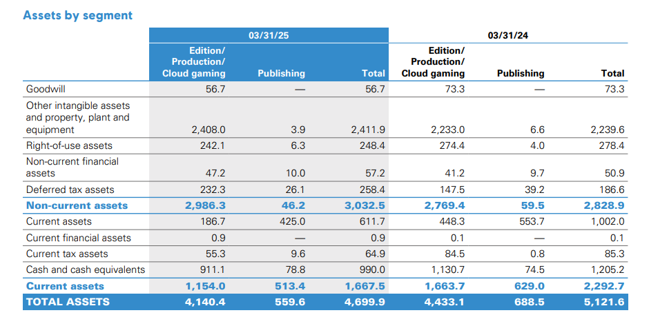 Speaking frankly, this structure is messy and not especially helpful for investors. A significant share of reported revenue is effectively Ubisoft billing itself, which makes it harder to assess true operating margins. Shareholders would likely benefit more from a cleaner breakdown — by franchise, content type, or lifecycle stage. It’s also telling that most of Ubisoft’s assets are concentrated in the Edition division.